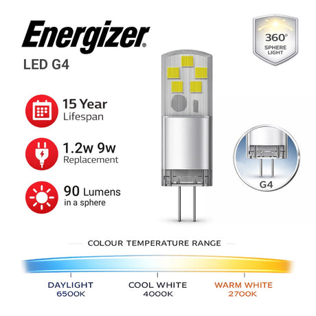 Energizer LED G4 Capsule Bulb 1.2W 90lm – 2700K / 6500K (Warm White / Daylight)