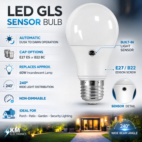 LED Dusk to Dawn Sensor GLS Light Bulb E27 / B22 – 9W 10W – 2700K (Warm White)