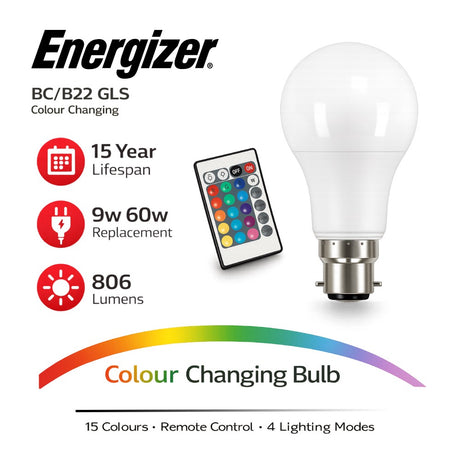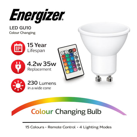 Energizer RGB LED Colour Changing Light Bulb with Remote Control – E27 / B22 / GU10