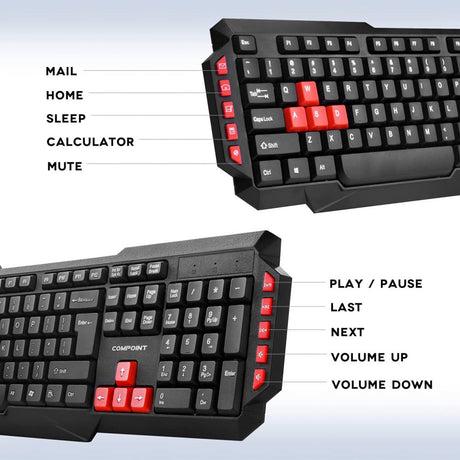 COMPOINT Wireless Keyboard & Mouse Deskset – Full-Size Multimedia Combo (Black)
