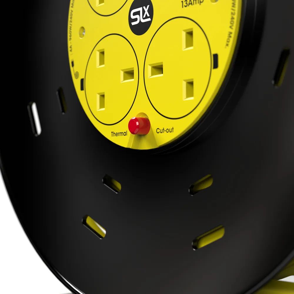 The SLx 90071PI 50m Cable Reel is a reliable, high-capacity power solution designed for long-distance use around the home, garden, or job site. Its visible cable and 4 gang setup make it practical and safe for demanding electrical needs.