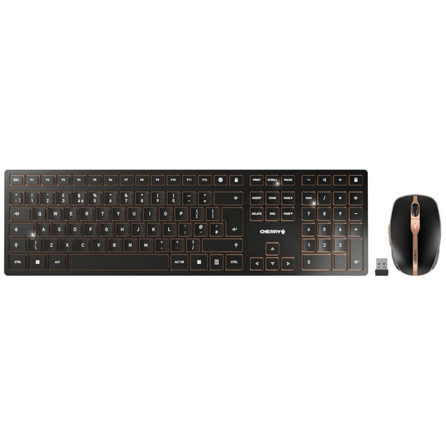 CHERRY DW 9100 Slim Wireless Keyboard & Mouse Set – Premium Dual-Mode Design (Black/Bronze)